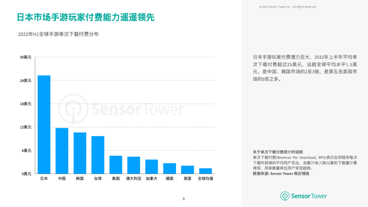 2022 年上半年日本手游市场:玩家支出突破 82 亿美元,平均单次下载付费为美国 5 倍