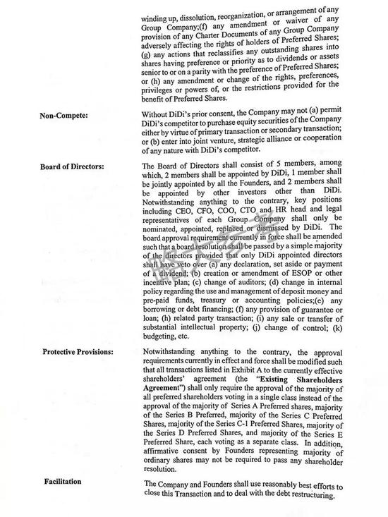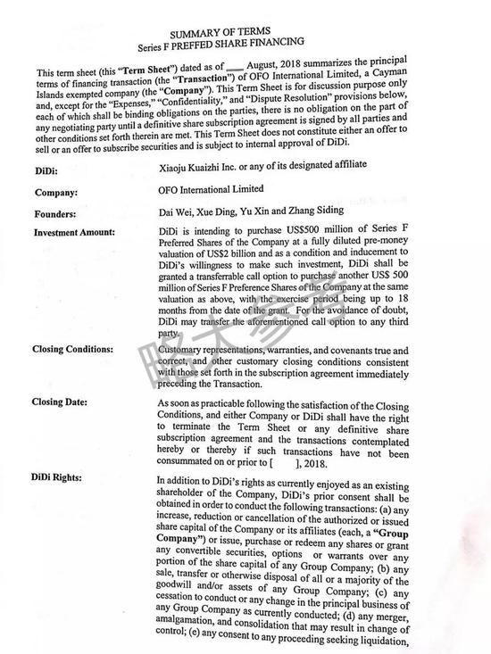 从挨近 ofo 中心人士处取得并曝光的一份出资意向书,滴滴出行 8 月曾提出以 20 亿美金估值收买 ofo,意向书中,滴滴提出新董事会将由 5 名成员组成,包含 CEO 等在内的一切要害岗位必须由滴滴提名、录用、替换或辞退。略大参阅指出,ofo 创始人戴威等将被踢出办理团队,滴滴在出资意向书中规则,收买成功后的董事会中,只要滴滴指定的董事会成员具有一票否决权。